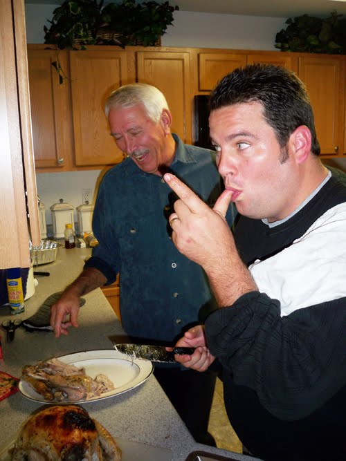 We were so thankful that mom, dad and Mike were able to visit us for Thanksgiving. We had a nice, quiet Thanksgiving feast at home. Mom made her yummy cherry cheese pie and a HUGE pot of gravy. I made an herb roasted turkey, crock pot mashed potatoes (recipe from Michaela), pecan crusted sweet potatoes, green bean casserole, honey glazed carrots, stuffing, crescent rolls and biscuits, and pumpkin cheesecake. It all turned out yummy!